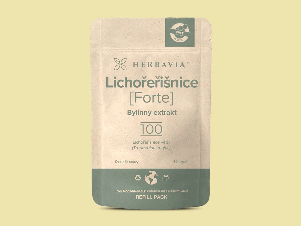 Zloženie: lišajník (Tropaeolum majus) štandardizovaný extrakt z celej rastliny (10:1), vegetariánska kapsula (hydroxypropylmetylcelulóza)